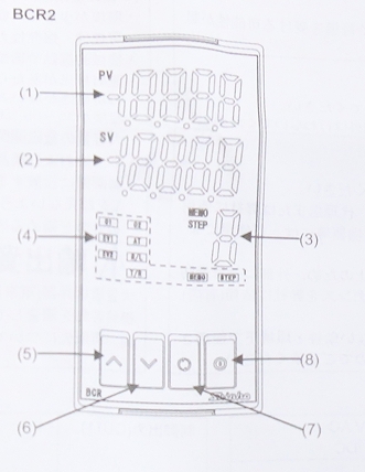 | (3) | MEMO/STEP Display | Indicates Set value memory number or step number(Program control).(For BCR2,BCD2) |